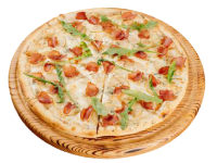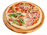 Свинина, куриная грудка су-вид, грилованный бекон, ростбиф, томаты, руккола, сливки, томатный соус, сыр моцарелла