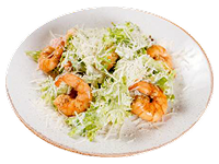 Креветки, листья салата, черри, пармезан, сухари пшеничные, соус "Цезарь"
